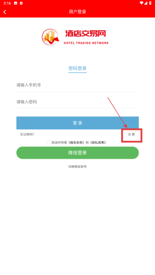 3、在用户注册页面,依次输入手机号、密码、确认密码,勾选同意协议后,点击【注册】完成注册操作。