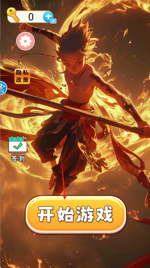 1、点击“开始游戏”按钮进入游戏。此步骤帮助新手快速进入游戏世界,开启冒险之旅。