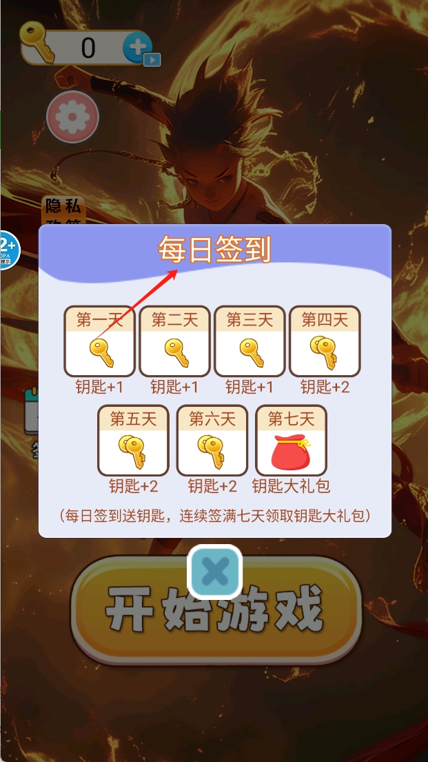 2、查看每日签到奖励并领取钥匙。此步骤指导新手如何通过每日签到获取额外奖励,增加游戏资源。