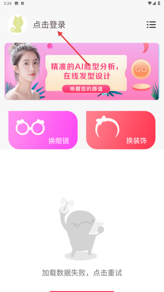 1、打开应用界面,点击上方的【点击登录】按钮。