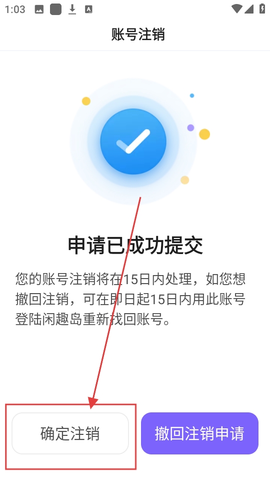 4、申请提交成功后,点击【确定注销】按钮,即可完成账号注销流程,账号将在15日内处理啦。