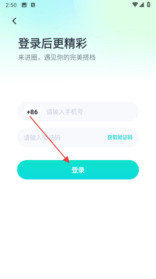 3、输入手机号和验证码,点击【登录】完成登录操作。