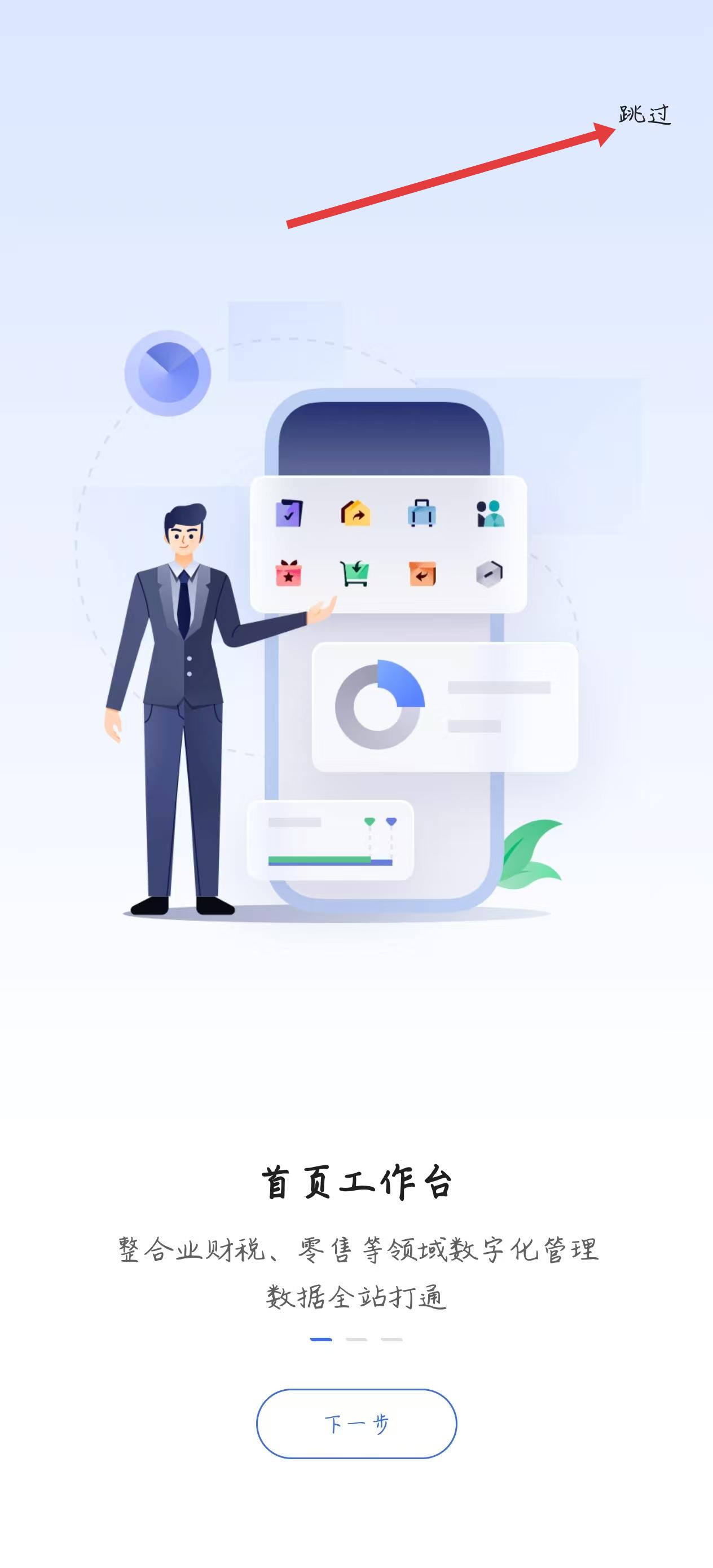 2、第二步,用户进入软件后,点击右上角【跳过】进行下一步。