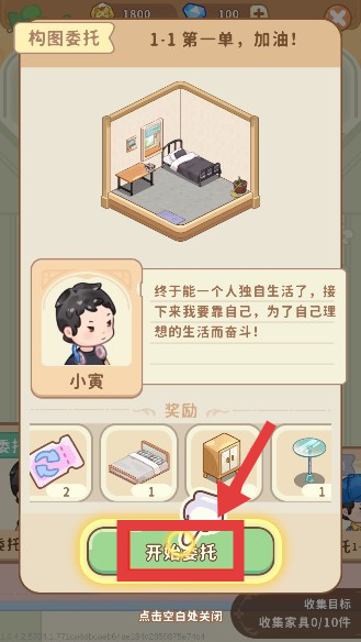 1、接受【构图委托】任务,点击【开始委托】,按照小寅需求布置房间。