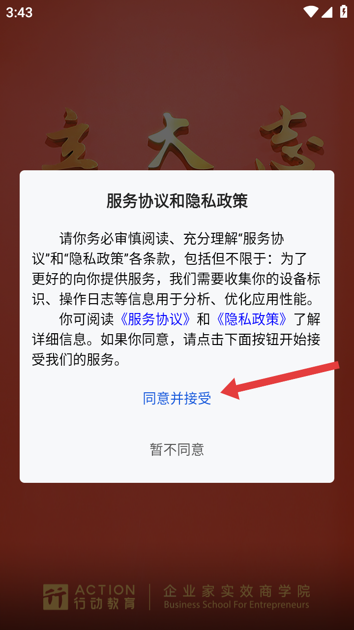1、用户打开软件后,点击【同意并接受】进入登录界面。