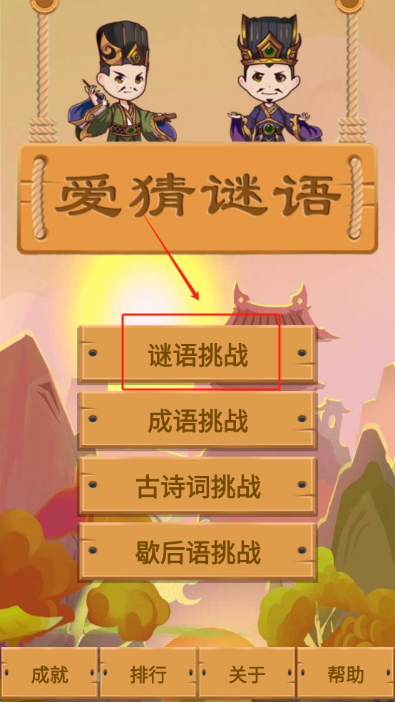 2、选择游戏模式:在游戏主界面,点击“谜语挑战”按钮选择进入谜语挑战模式。
