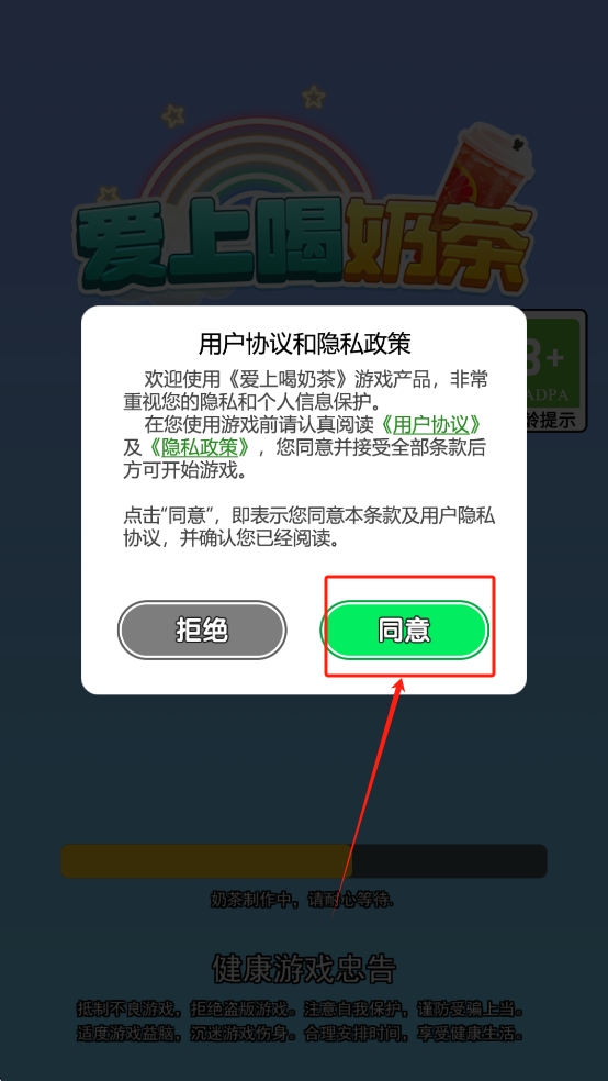 1、同意用户协议:在游戏启动时,点击“同意”按钮以接受用户协议和隐私政策。