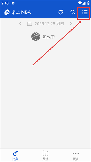1、在【掌上NBA】界面右上角,点击【菜单按钮】,可展开功能列表,便于快速查找所需内容。