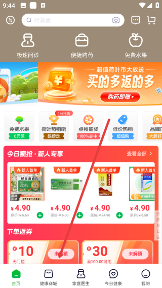 4、优惠服务叠加:定期推出药品折扣活动,支持积分抵扣与权益卡优惠,购药满额享免费配送,降低用户健康消费成本。