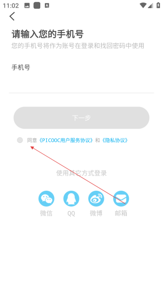 1、打开PICOOC智能体脂仪,点击【同意协议】。