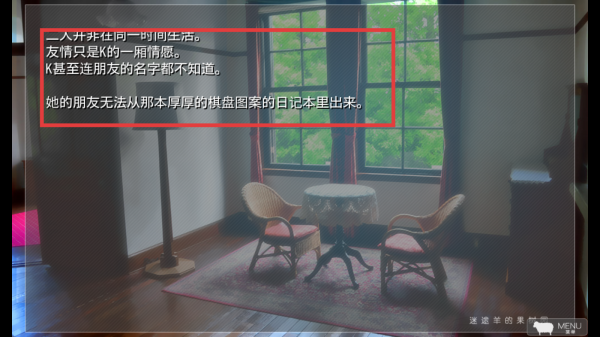 2、关注剧情背景叙述,理解【她的朋友无法从那本厚厚的棋盘图案的日记本里出来。】的设定,更好融入游戏剧情。