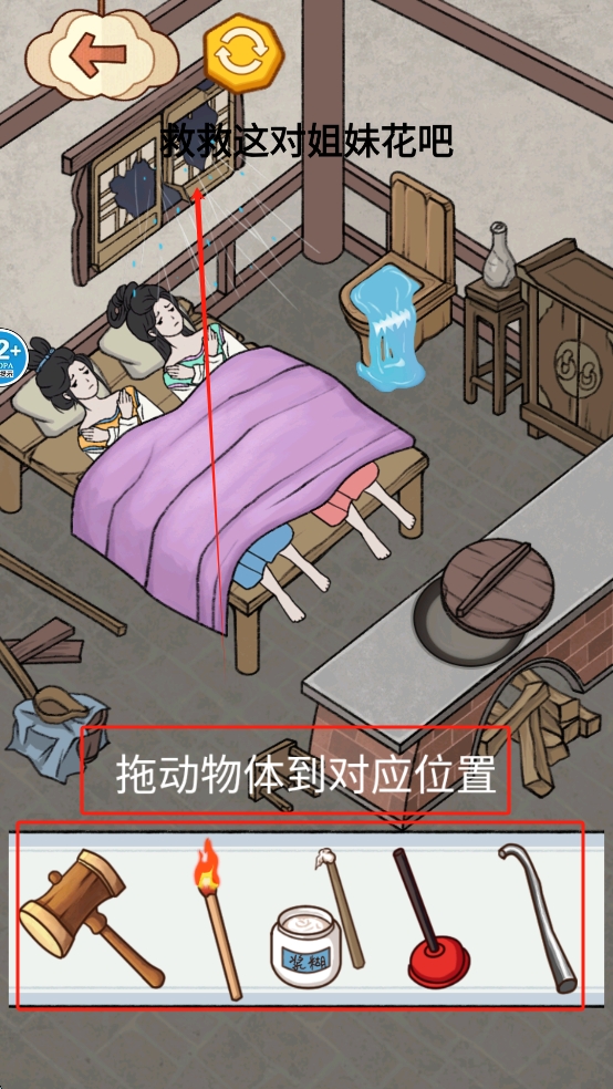 3、进行游戏操作:在游戏关卡中,根据提示拖动物体到对应位置,例如将工具拖到需要修理的地方,完成关卡目标。
