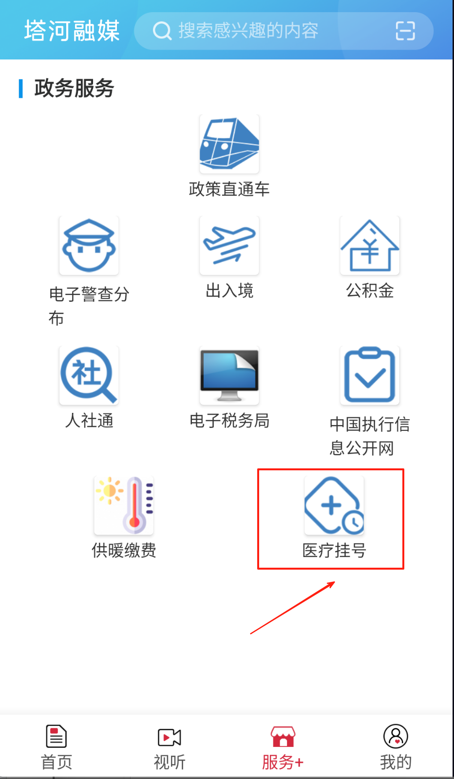 3、进入服务大厅选择医疗挂号模块,输入个人信息后即可在线预约县内医疗机构。