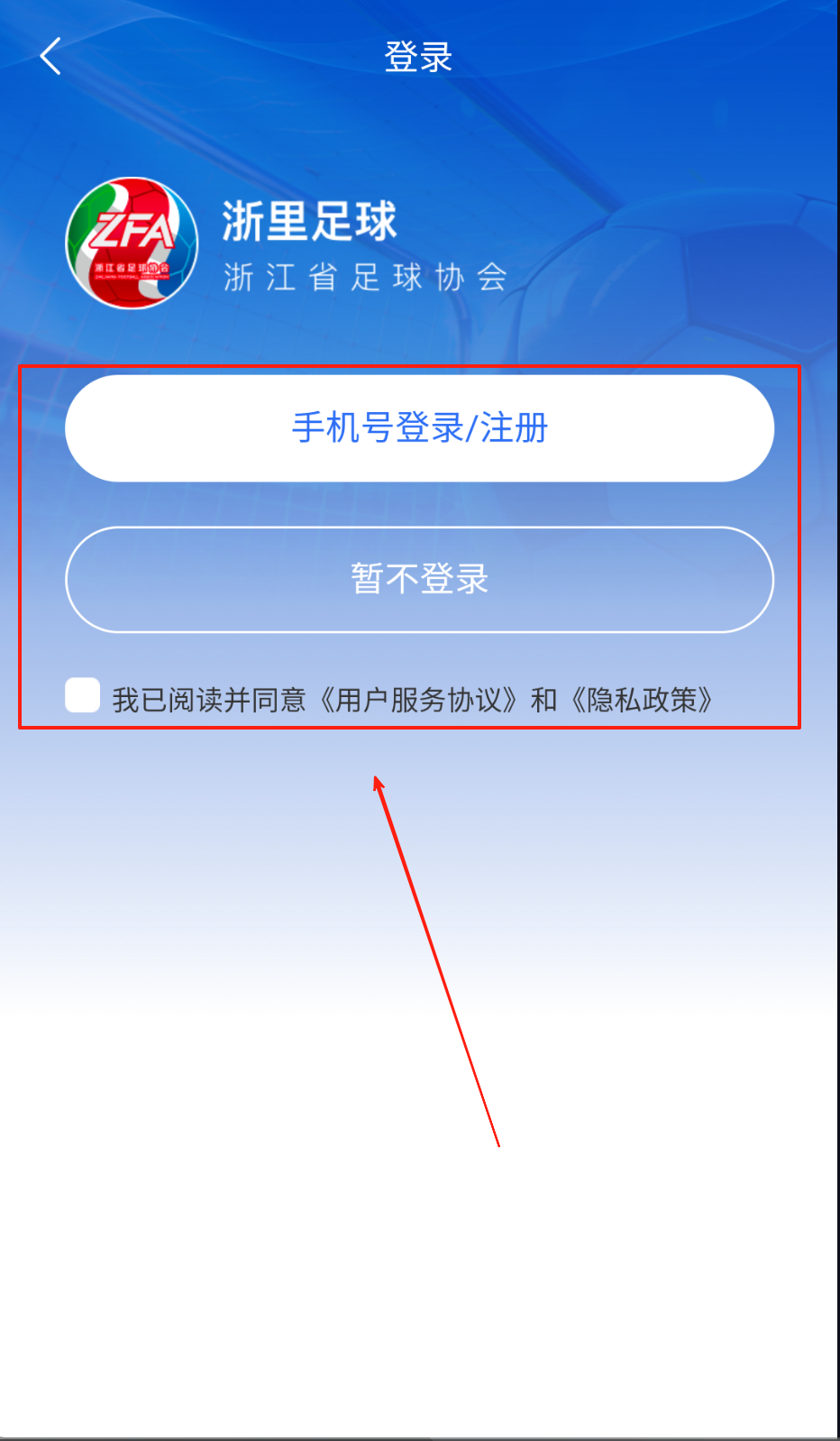 1、安装完成后根据个人角色选择球迷、球员或教练身份登录系统,个性化获取对应赛事资讯与活动提醒推送服务。