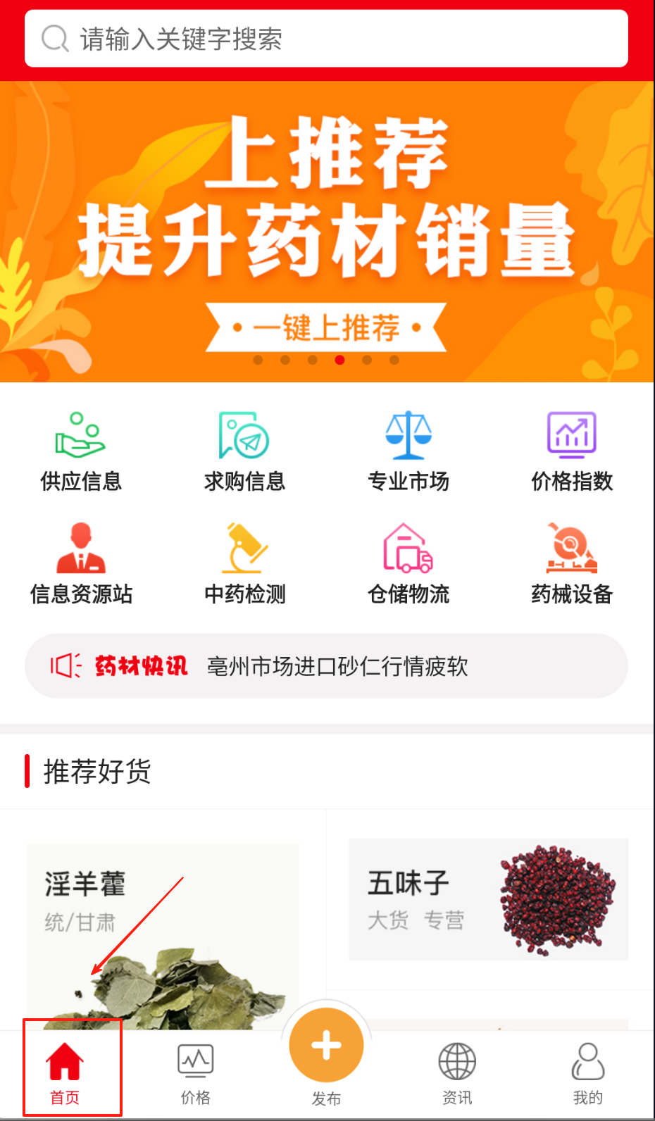 1、在首页资讯板块浏览每日更新的行业政策解读与市场趋势报告,通过顶部搜索栏输入关键词可定位具体药材的深度分析文章。