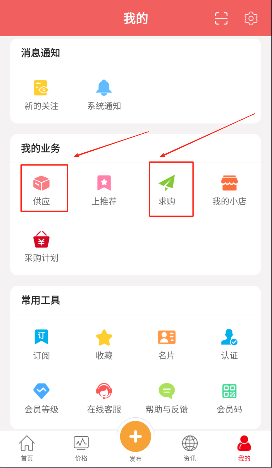 3、通过"我的供求"模块创建商品信息表单,系统智能匹配潜在交易对象并推送至供需双方的即时通讯窗口。