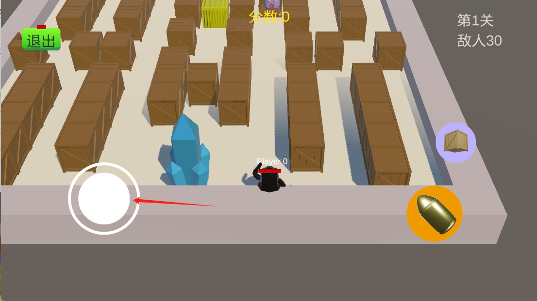 1、通过虚拟摇杆控制角色移动,寻找并消灭敌人。左下角的虚拟摇杆用于角色移动。