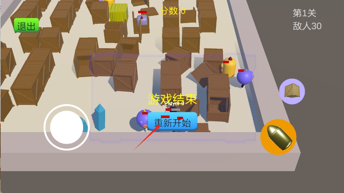 2、点击屏幕上的子弹图标进行射击。消灭敌人后,游戏会提示“重新开始”。