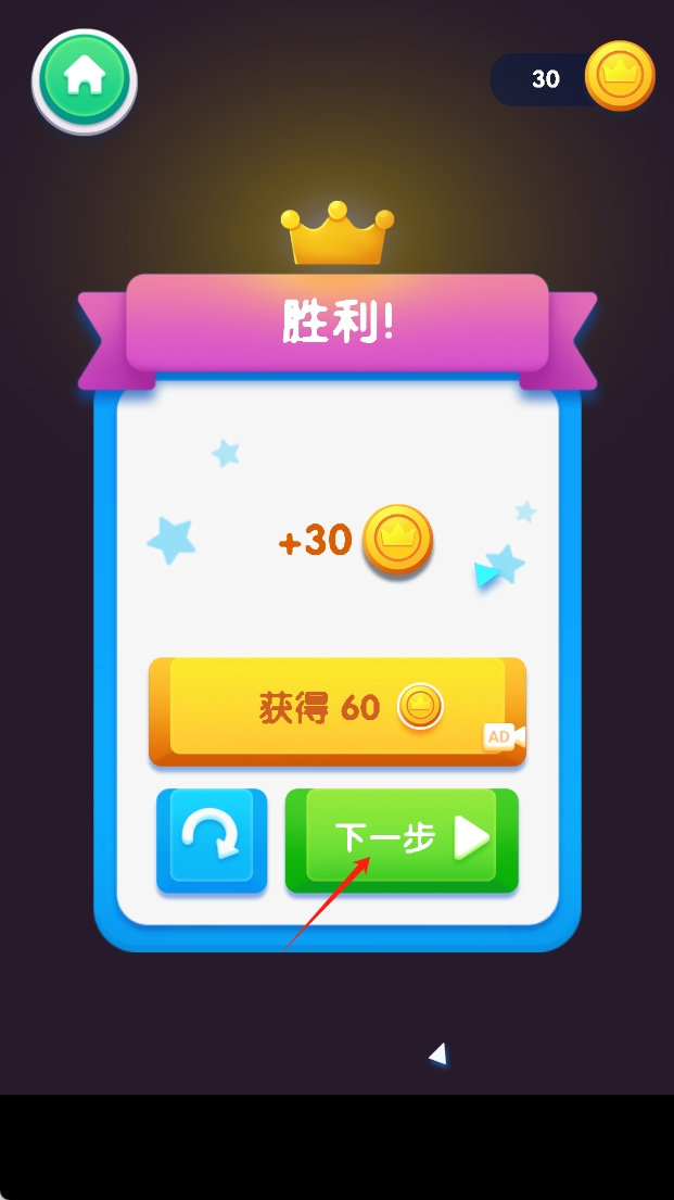 2、完成任务后,点击“下一步”按钮继续游戏,胜利后会获得金币和奖励。