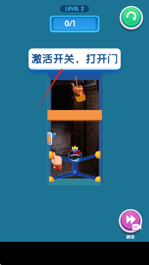 3、在下一关中,点击“激活开关,打开门”进行操作,通过激活开关解救角色并完成关卡。