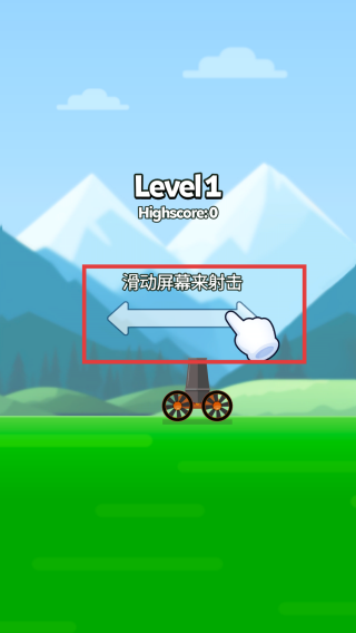 1、进入游戏【Level1】后,按照提示【滑动屏幕来射击】,掌握基本操作方法。