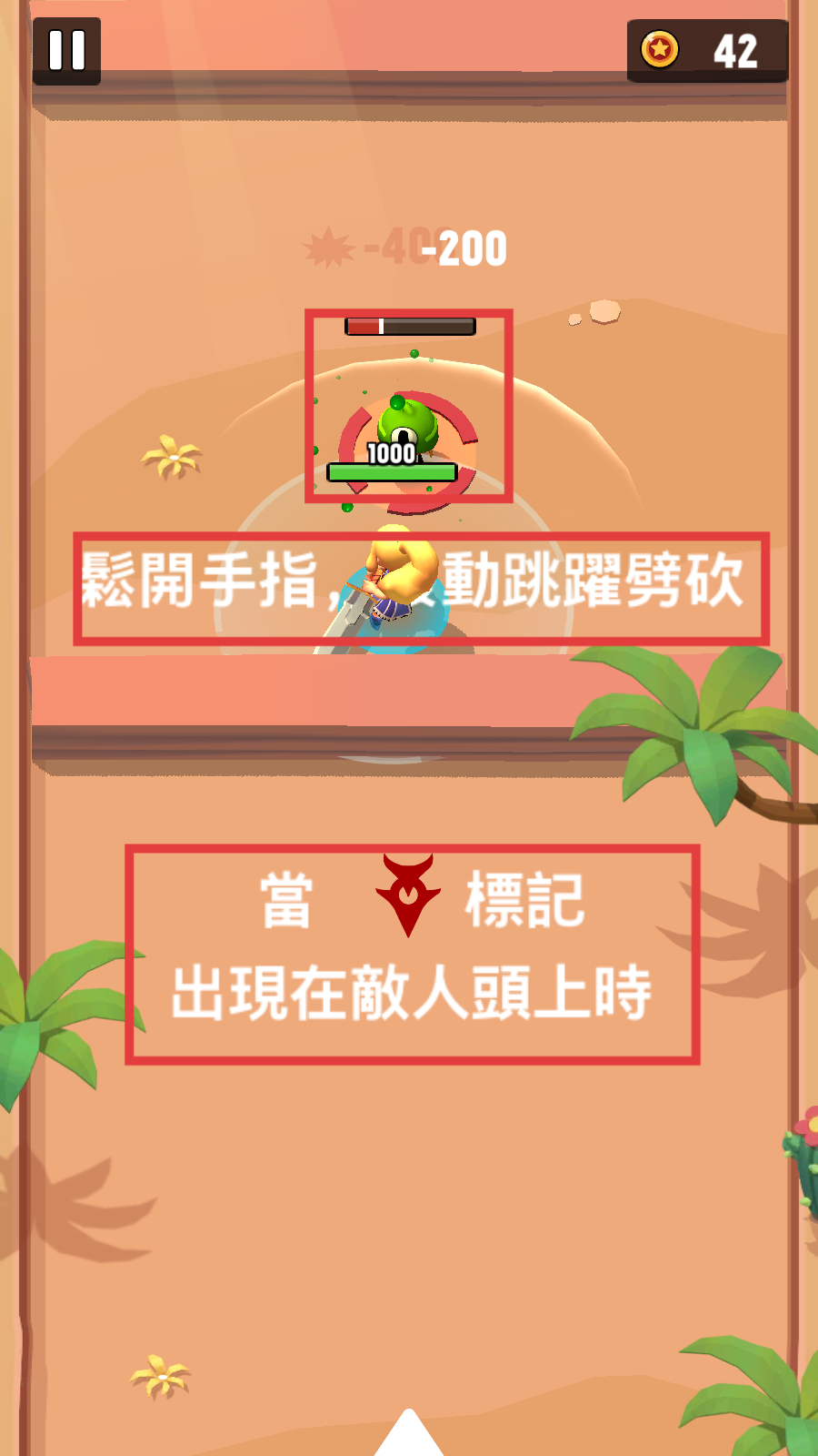 3、留意敌人状态,当【標記】出現在敵人頭上時,把握时机,利用【鬆開手指,自動跳躍劈砍】进行高效攻击。