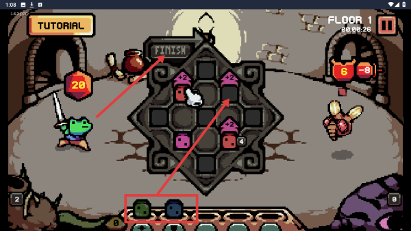 1、在游戏关卡中,如【FLOOR1】,注意棋盘上的骰子和标记,向【FINISH】方向推进,合理放置骰子,利用棋盘上的【+2】等增益效果。
