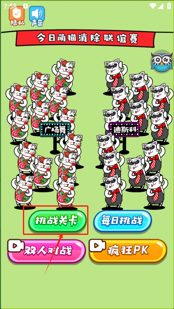 2、选择游戏模式:在游戏主界面,选择“挑战关卡”一个模式开始游戏。