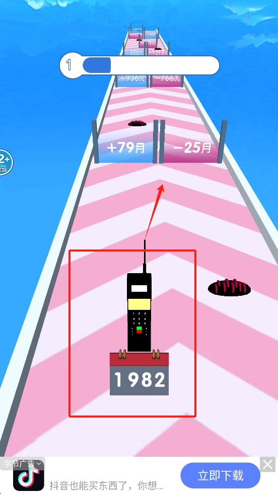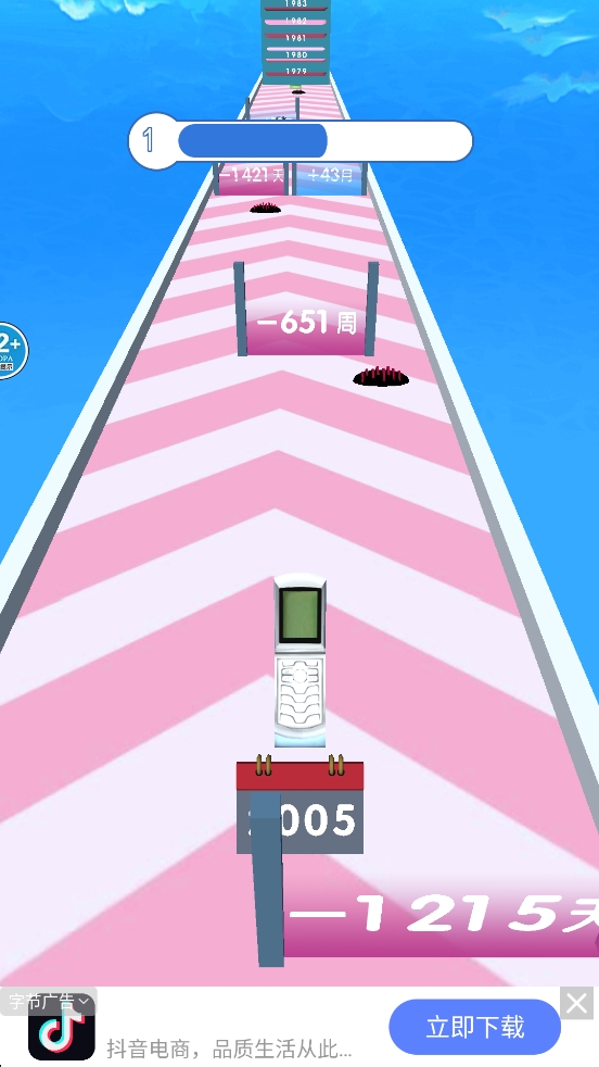 1、创意进化玩法:独特地以手机进化为主题,让玩家从复古的大哥大一路升级到未来概念机,每个阶段都带来不同的跑酷体验。