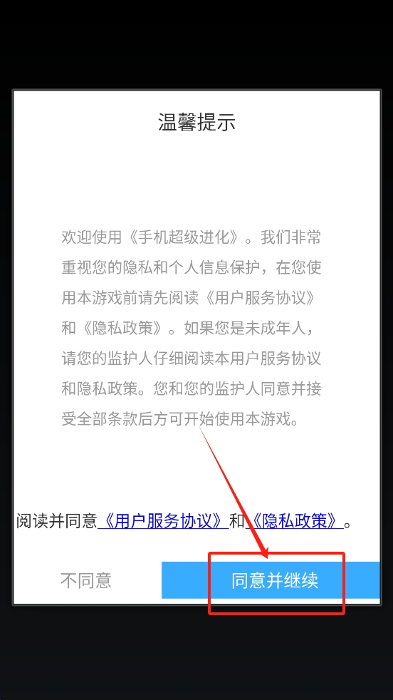1、同意条款并继续:在游戏启动时,阅读并同意《用户服务协议》和《隐私政策》,以开始游戏。
