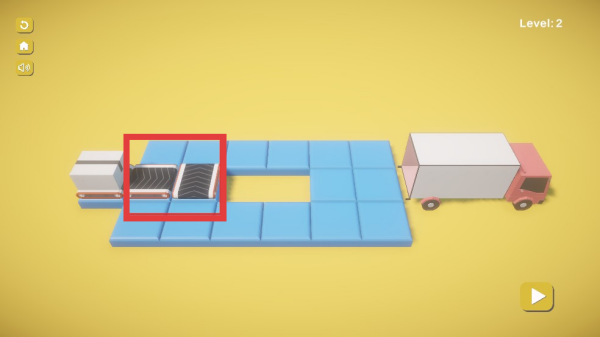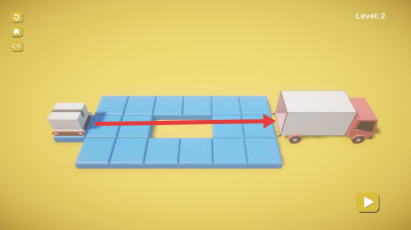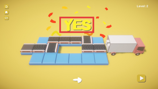 3、完成路径搭建后,点击播放按钮,观察货物运输过程,若成功送达,会出现【YES】提示,代表关卡通过。