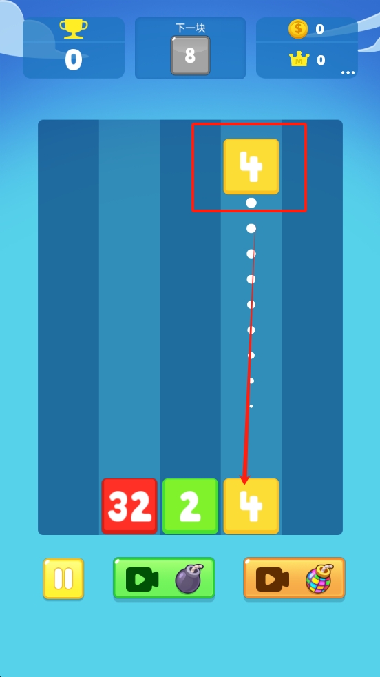 1、核心操作解析:通过左右滑动控制数字球的下落位置,当相邻数字相同时会自动合并翻倍。