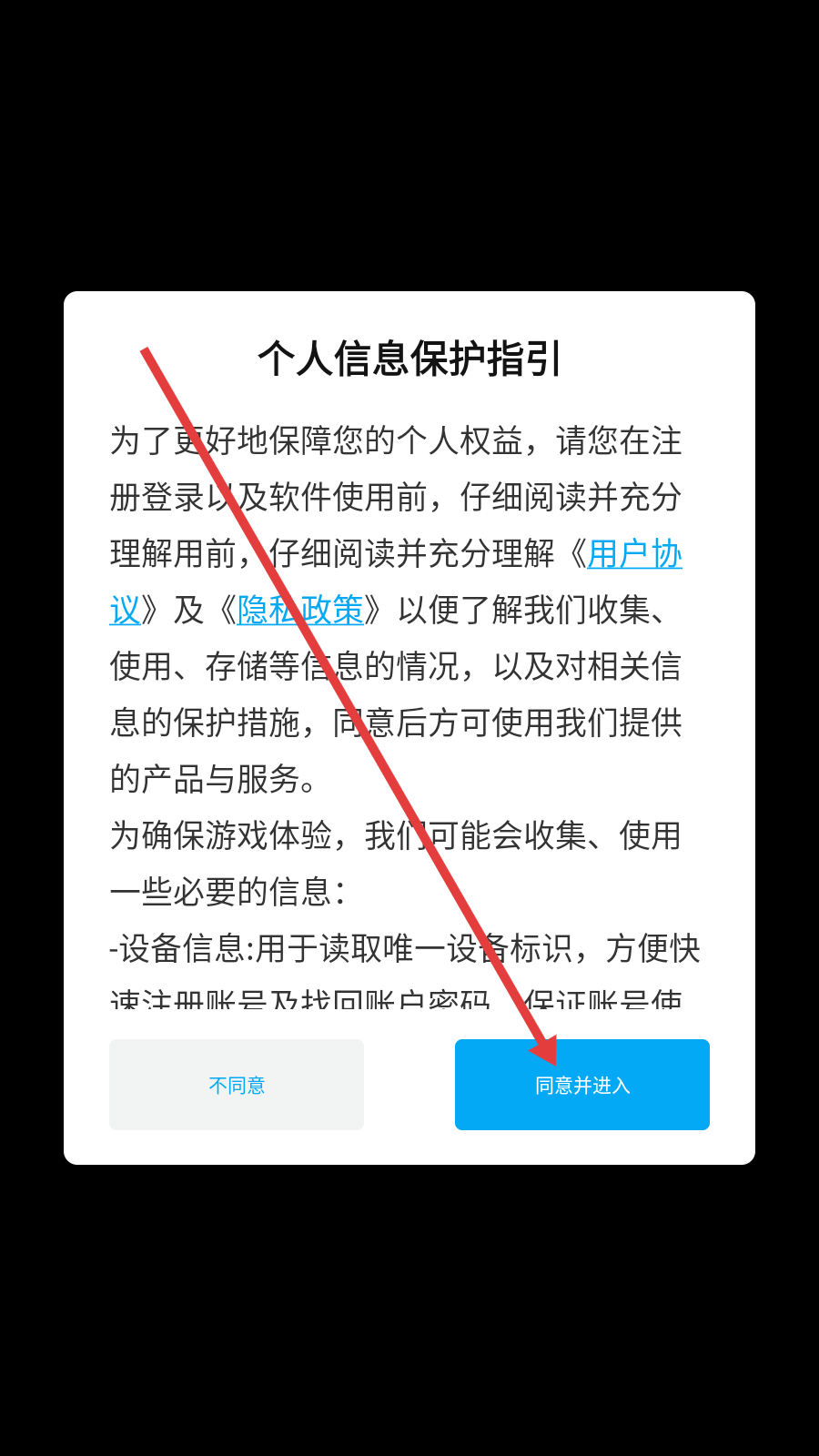1、进入游戏,点击【同意并进入】。