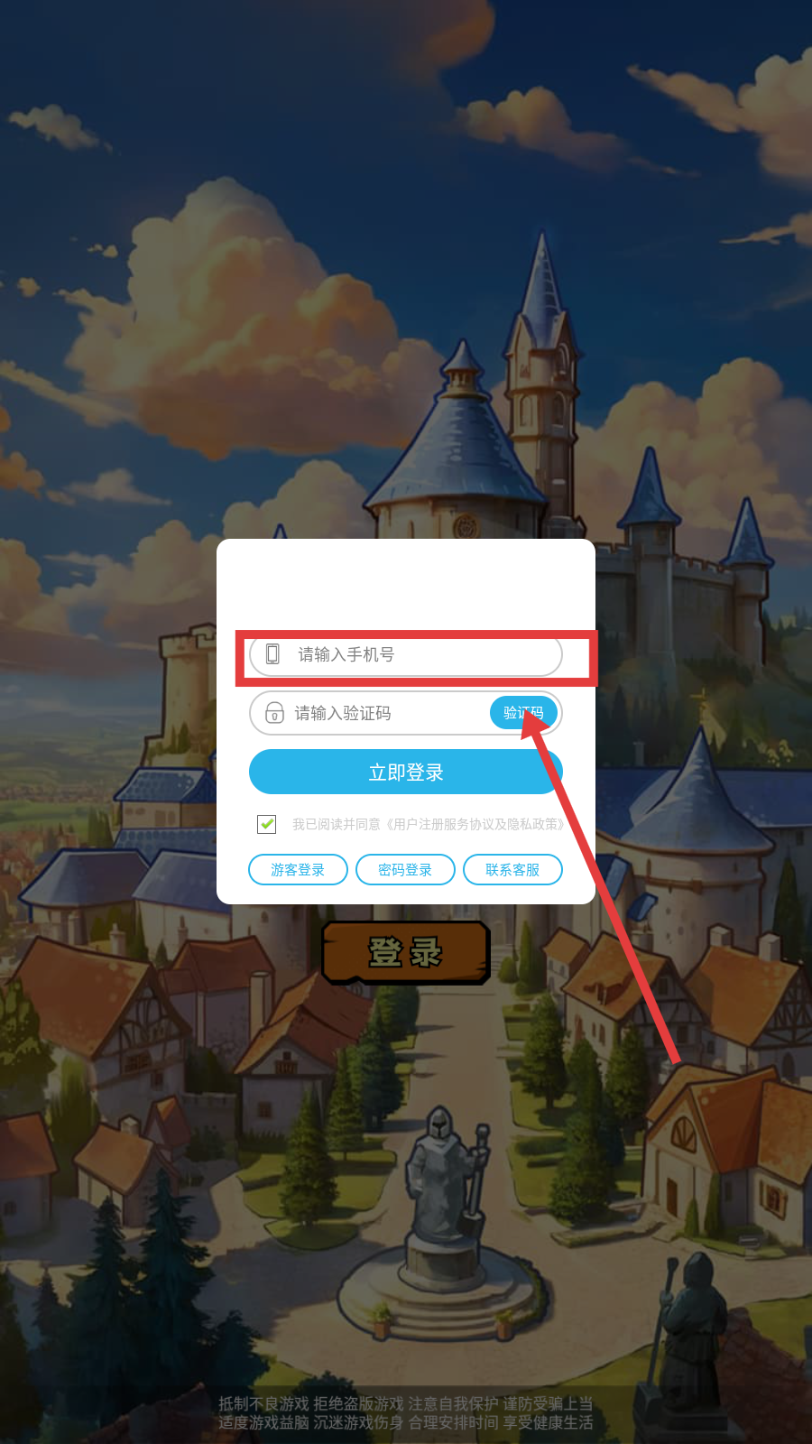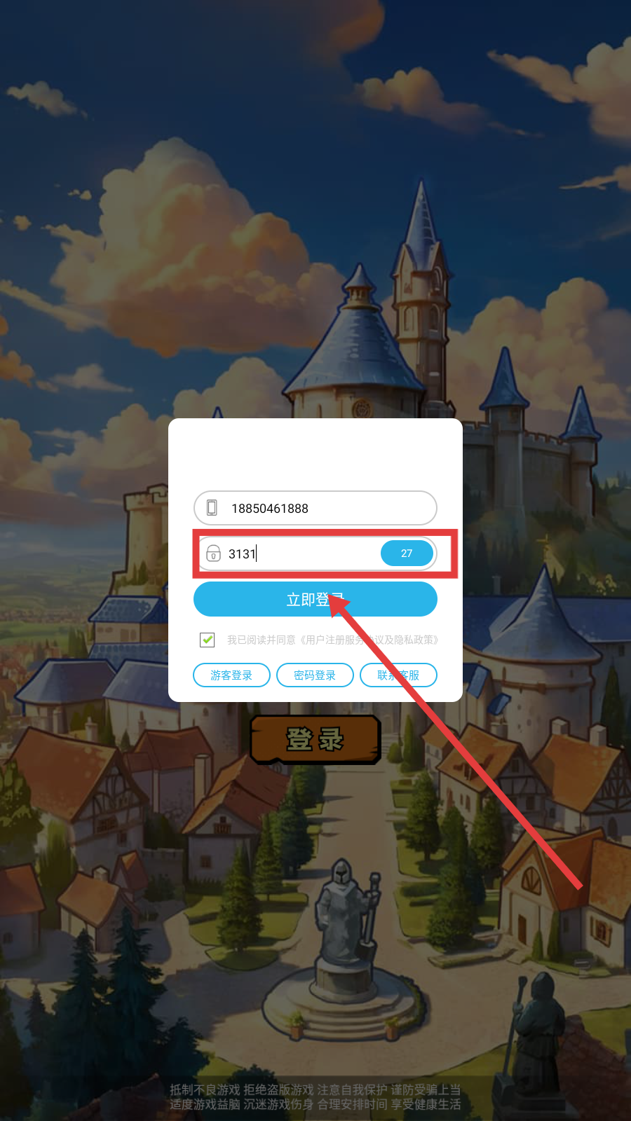 3、输入验证码,点击【立即登录】,即可开始游戏。