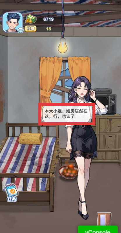 1、在剧情场景中,留意角色对话,了解角色关系和任务背景,像“本大小姐,婚房居然在这,行,也认了”,把握剧情走向。