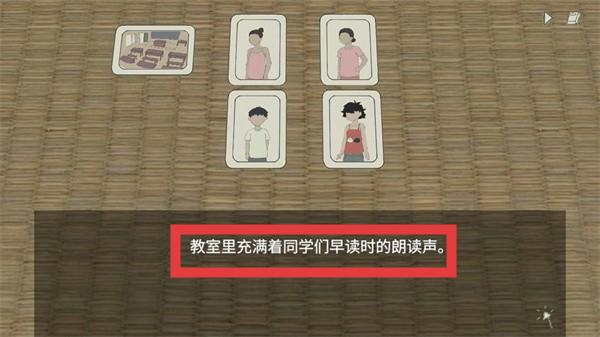 2、通过分析“教室里充满着同学们早读时的朗读声”内容等,感受游戏的生活场景氛围,了解剧情线索。