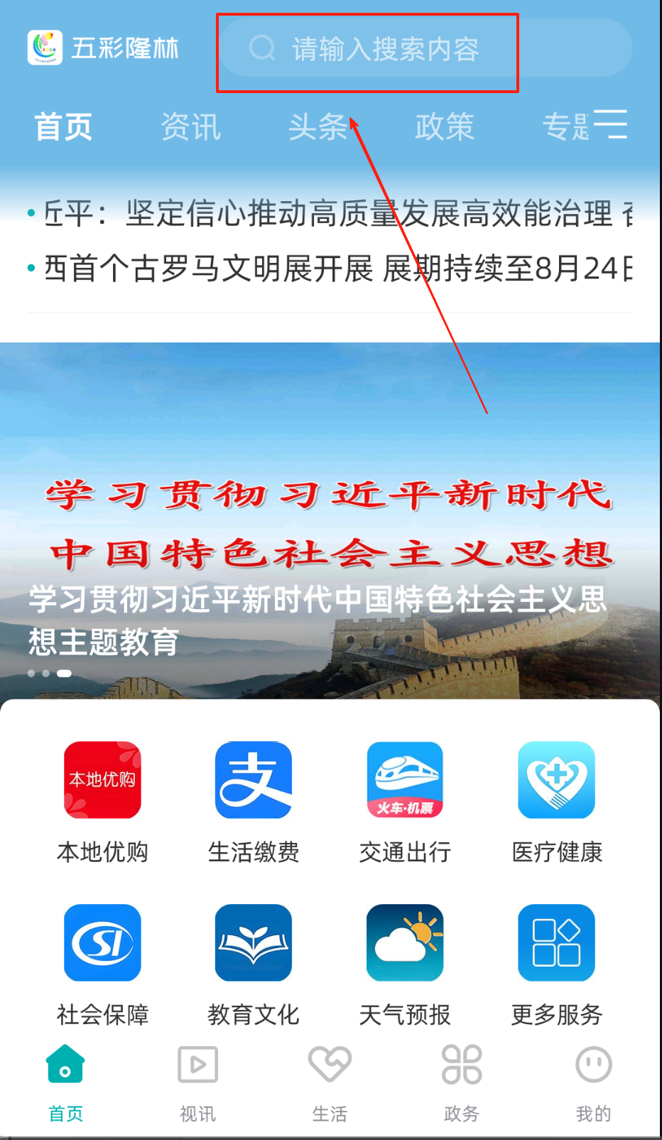 1、主界面分类导航栏划分新闻、服务、政务三大板块,点击频道标签即可浏览对应内容。通过顶部搜索框输入关键词可快速定位目标信息。