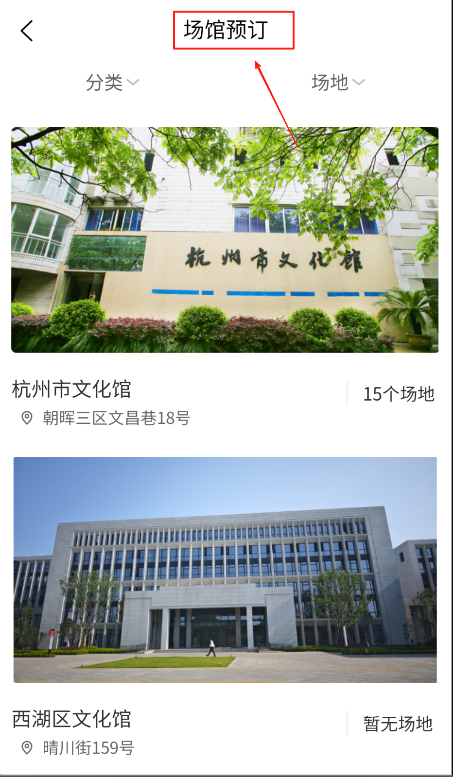 2、根据地理位置与场馆类型双重筛选功能,快速定位周边文化场所完成在线预约。