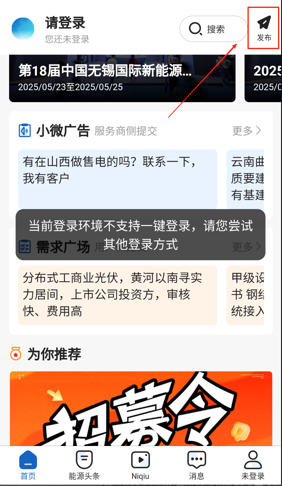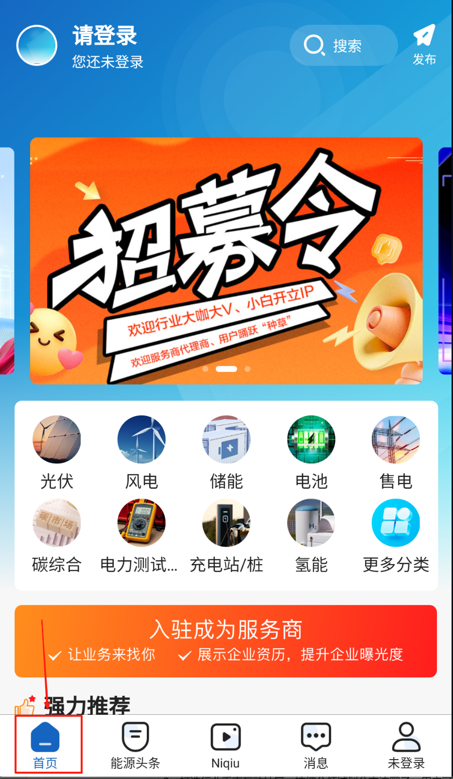 1、打开应用后点击首页导航栏,浏览能源行业头条资讯与最新政策解读,掌握实时动态。