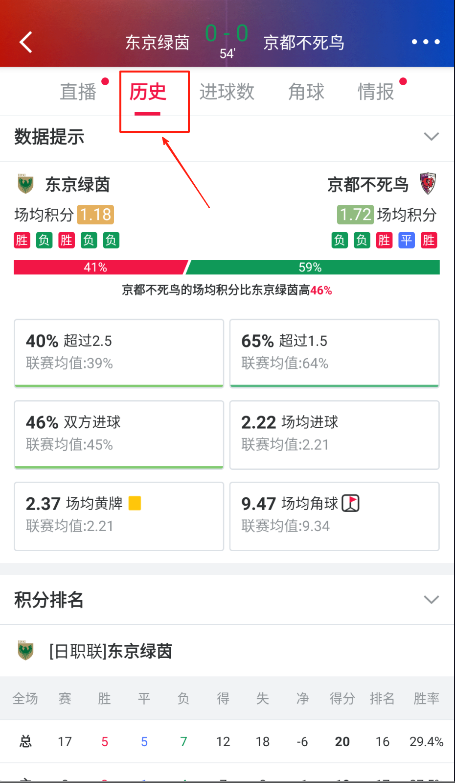 2、在比分直播界面可切换多种数据维度,结合历史交锋记录与实时状态进行赛事分析。