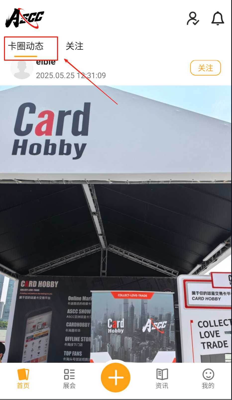 3、首页“卡圈动态”能看到藏友晒卡,点关注按钮就能实时查看elbie等大神的收藏动态哦。