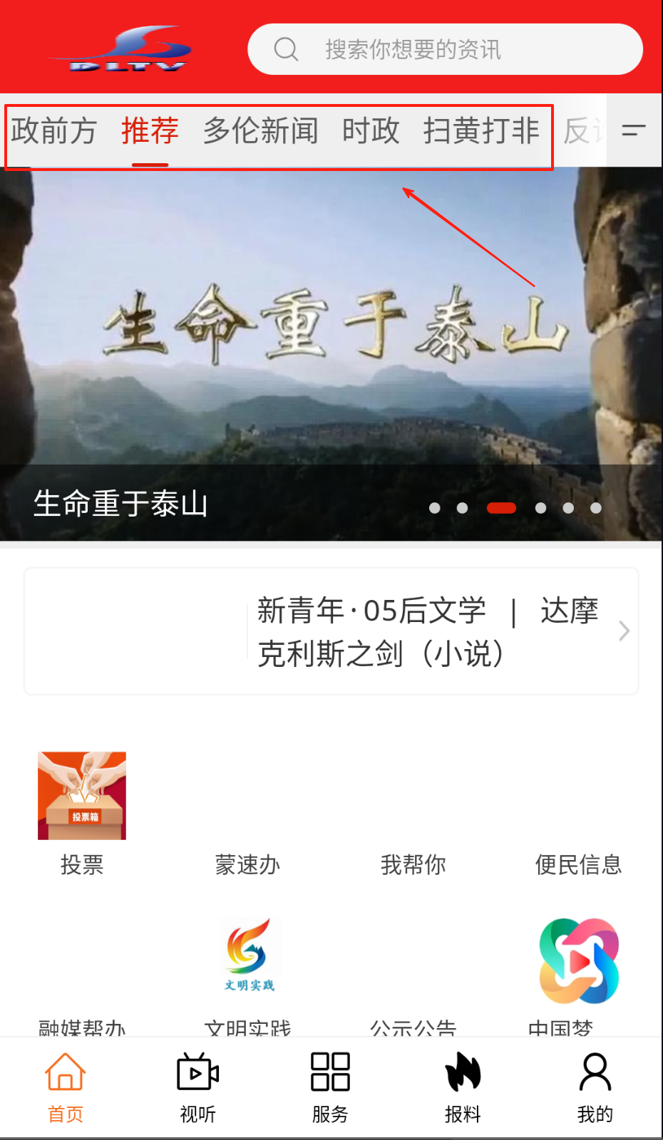2、通过顶部搜索栏输入关键词精准查找目标信息,或在视听板块观看短视频了解新闻概要。