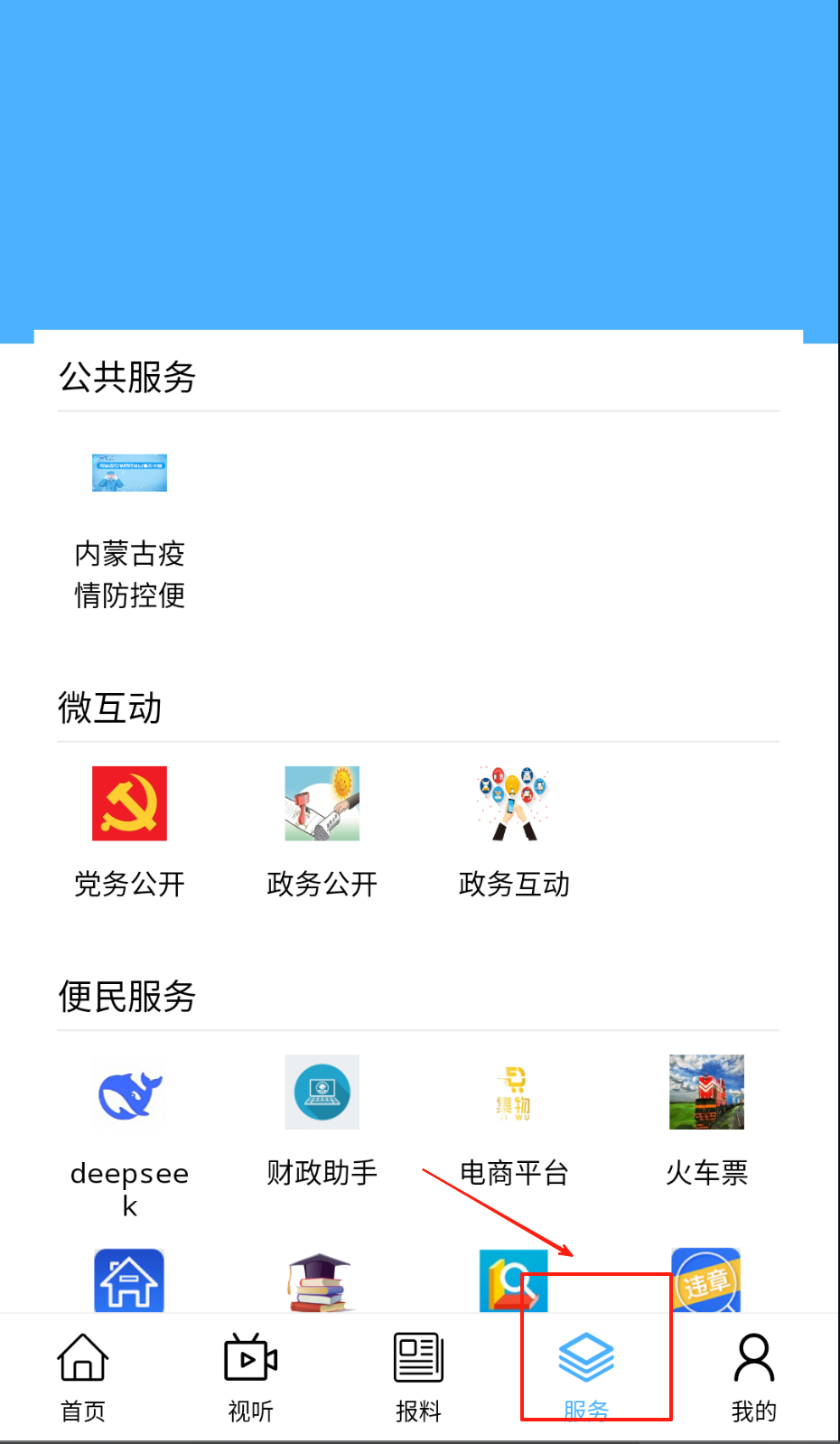 3、点击"我的服务"模块办理养老保险查询、公交实时到站提醒等20项民生业务。