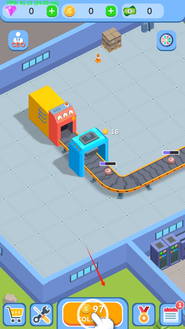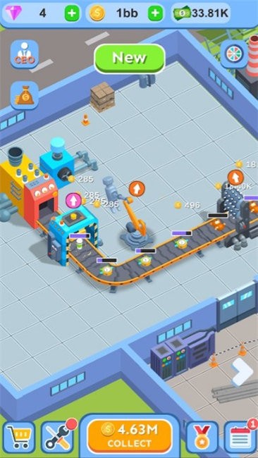 3、通过点击界面下方的金币按钮,查看当前金币数量,管理工厂财务,确保运营顺畅。