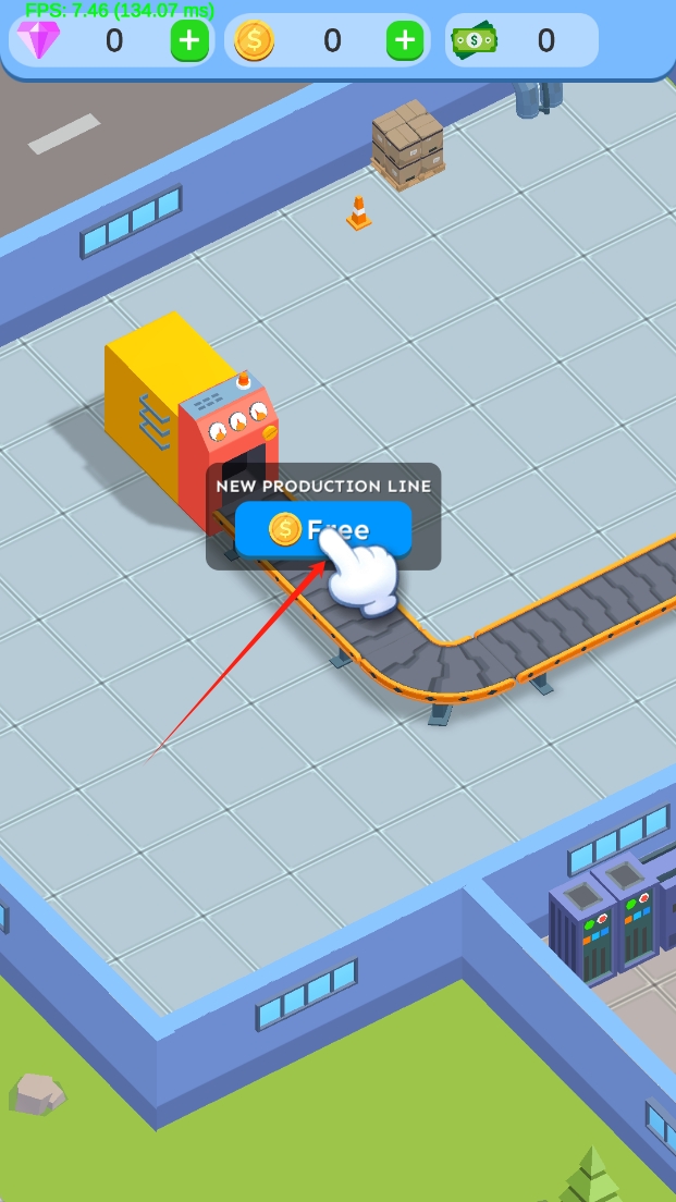 1、点击“NEW PRODUCTION LINE”按钮,免费创建新的生产线,扩展工厂的生产能力。