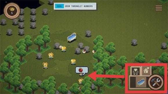 2、依据屏幕目标提示【GROWTHWONKLETNUMBERS】,利用右下角功能按钮,给角色提供资源,助力其数量增长。