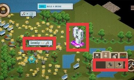 3、按照【BUILDABRIDGE】目标,运用右下角工具按钮,建造桥梁,同时留意角色反馈如【lovely】。
