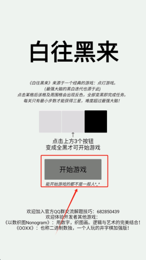 1、开始游戏:点击上方的三个按钮,使它们全部变成黑色,然后点击“开始游戏”按钮进入游戏。