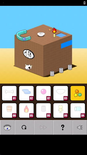 3、选择物品:在关卡中,点击下方的物品栏,选择正确的物品放置到盒子上。