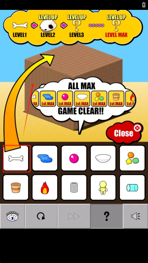 1、完成关卡:当所有物品都放置正确后,会出现“ALL MAX GAME CLEAR!!”提示,点击“Close”按钮关闭提示。